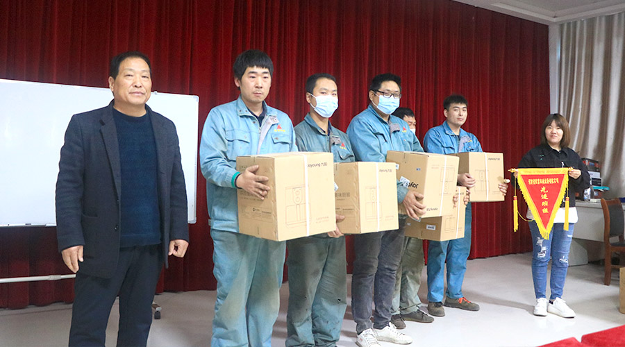 11月15日(rì),公(gōng)司副總經理(lǐ)周紀芳女士、生產總監李富(fù)貴以及各車間的員工(gōng)們齊聚一堂參(cān)與頒獎典禮。生(shēng)產總監(jiān)李富貴和副總經(jīng)理周紀芳,為獲獎團隊和個人頒發了榮譽紅(hóng)旗,和美的(de)空氣炸鍋作為獎勵。