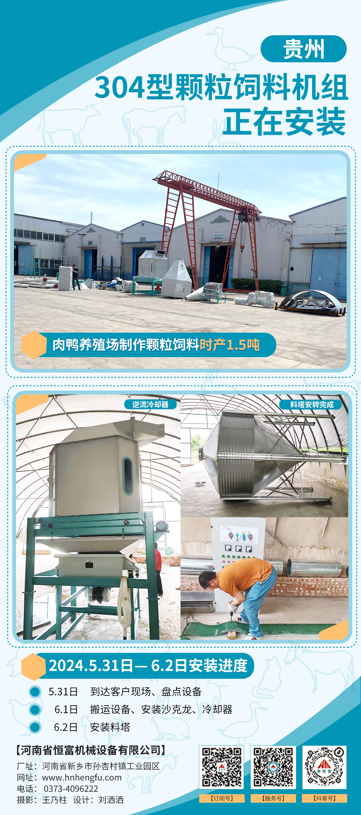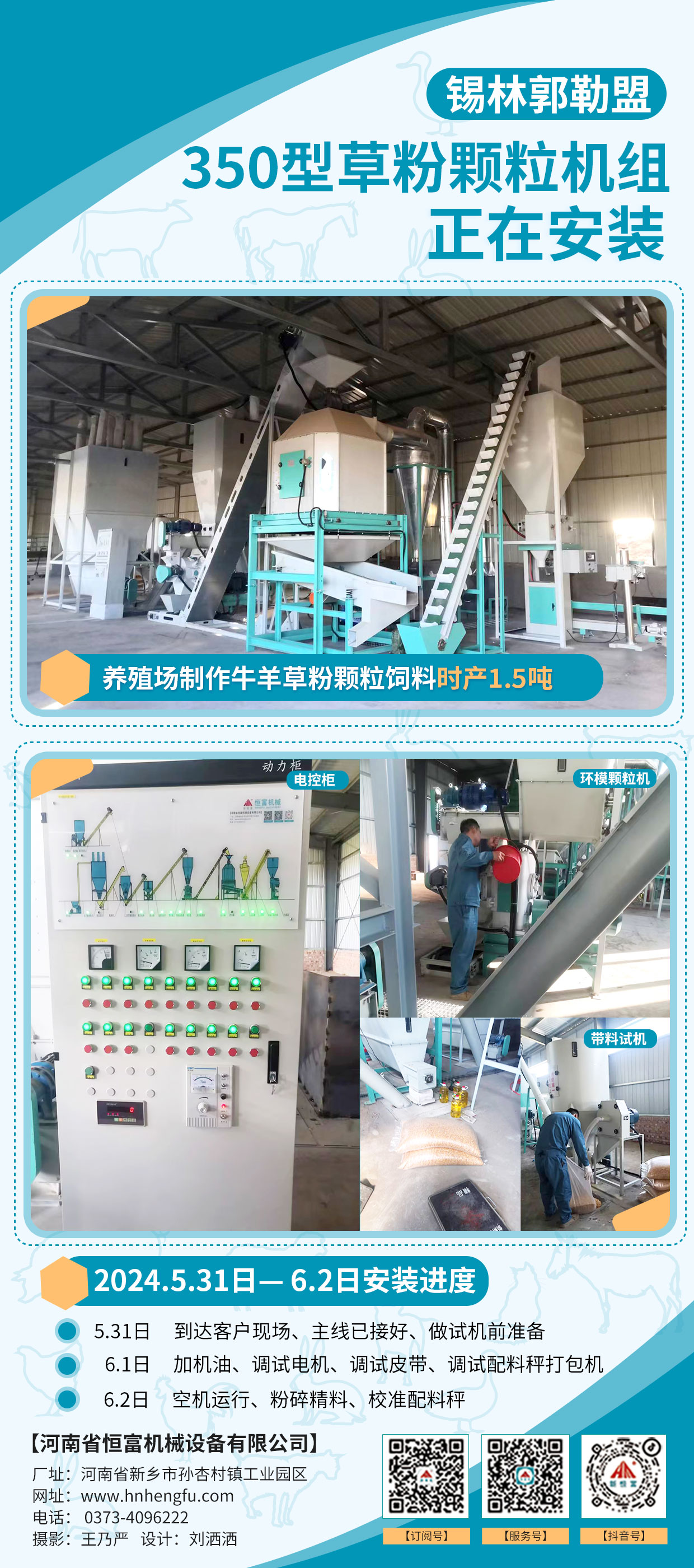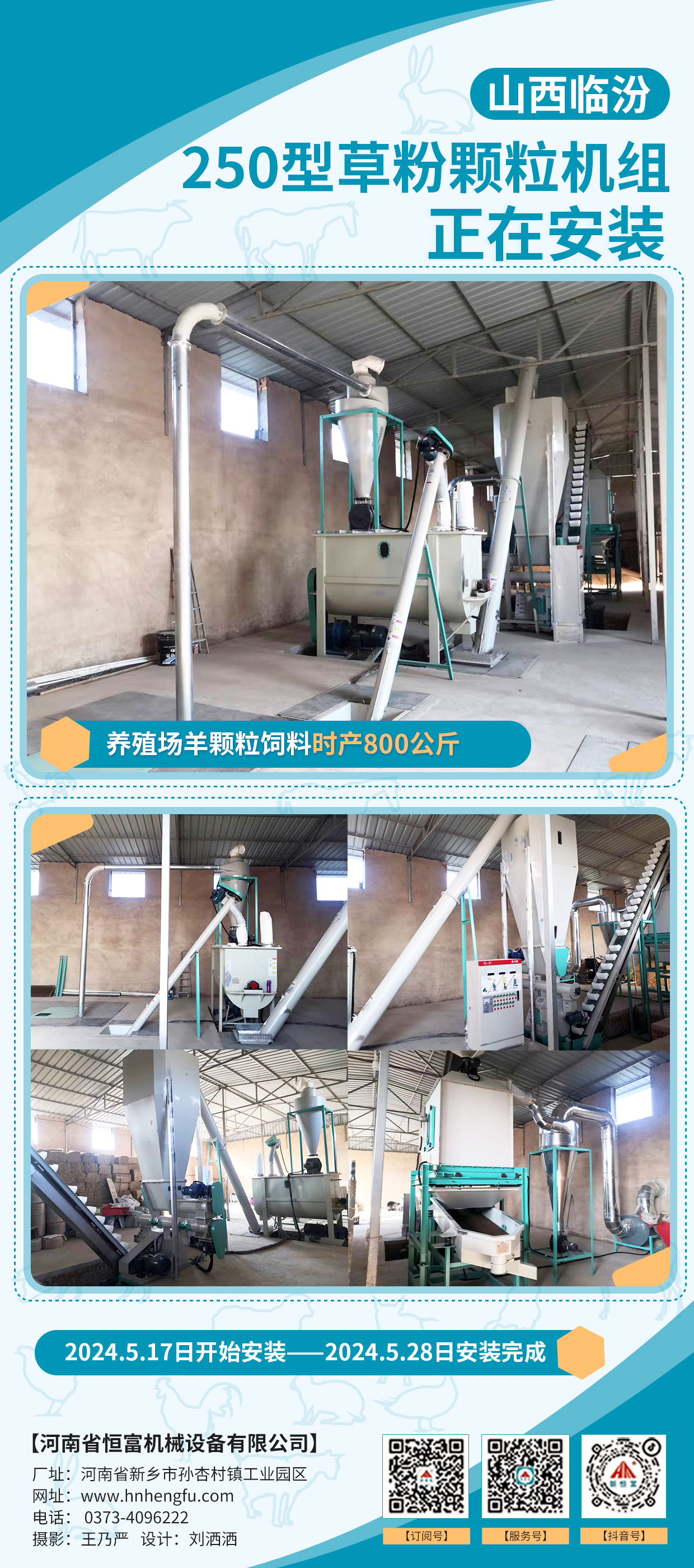正在安裝的設備:山西臨(lín)汾250型草(cǎo)粉顆粒飼料(liào)機組、貴州304型顆粒飼料機組、內蒙古錫(xī)林郭勒350型草粉顆粒飼料機組。