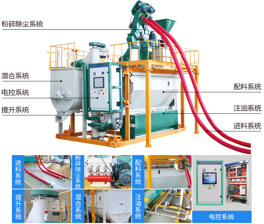 PLC可視化(huà)控(kòng)製係統,電腦 / 平板(bǎn) / 手機全自動化智能觸摸屏一鍵操作(zuò);自動上料、自動粉(fěn)碎、自動稱重、自動注油(yóu)、自(zì)動混合、自動放料。
