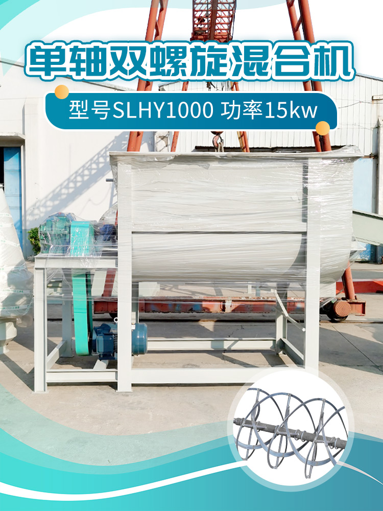單軸雙螺旋混合機轉子采用主軸帶動雙(shuāng)層環帶狀(zhuàng)螺旋葉片,其攪拌(bàn)時間短、生產效(xiào)率高,混合均勻度好,適應範圍廣,通用性強,常用於大、中、小型飼料廠、養殖場(chǎng)。