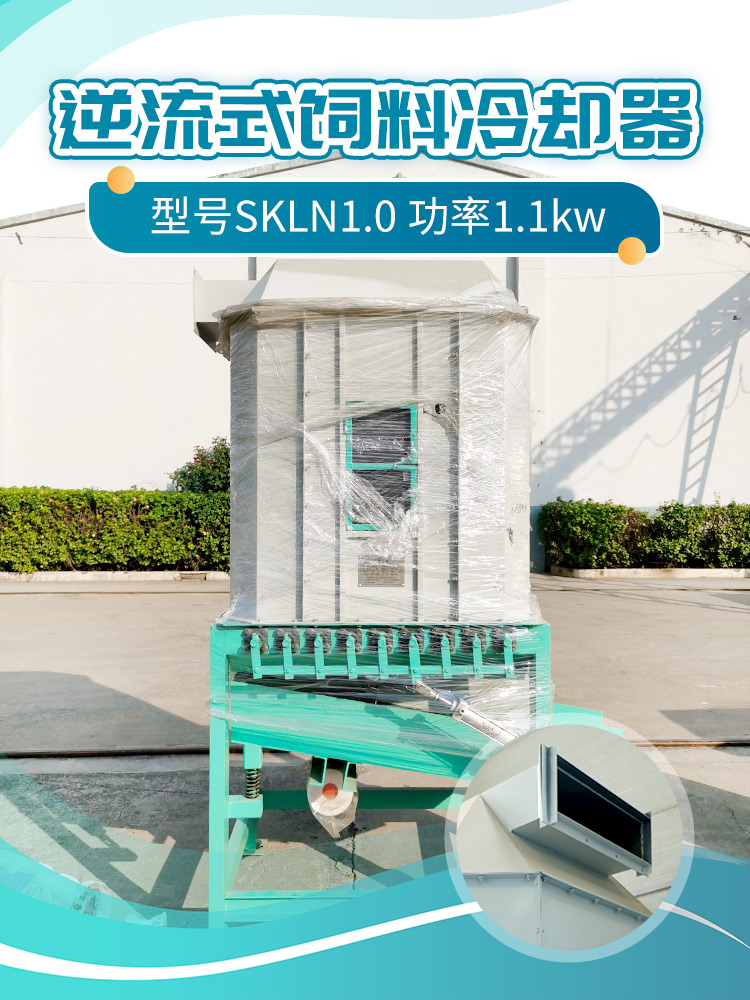 逆流式冷卻器,通常安裝在環模顆粒機後端,主要是利用物(wù)流與氣流的相對運動來把高溫度、高濕度的顆粒飼料進行烘幹和冷卻,使其成為可以(yǐ)易儲存和包裝的成品飼料(liào)。