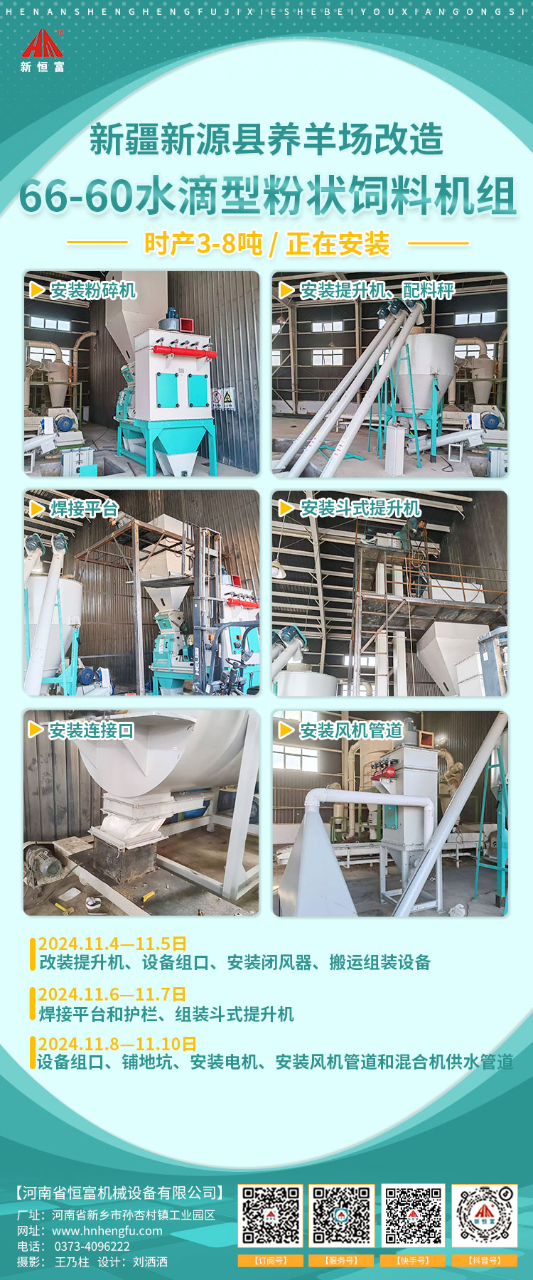 3. 新疆新源縣(xiàn)66*60水滴(dī)型粉狀飼料機組
