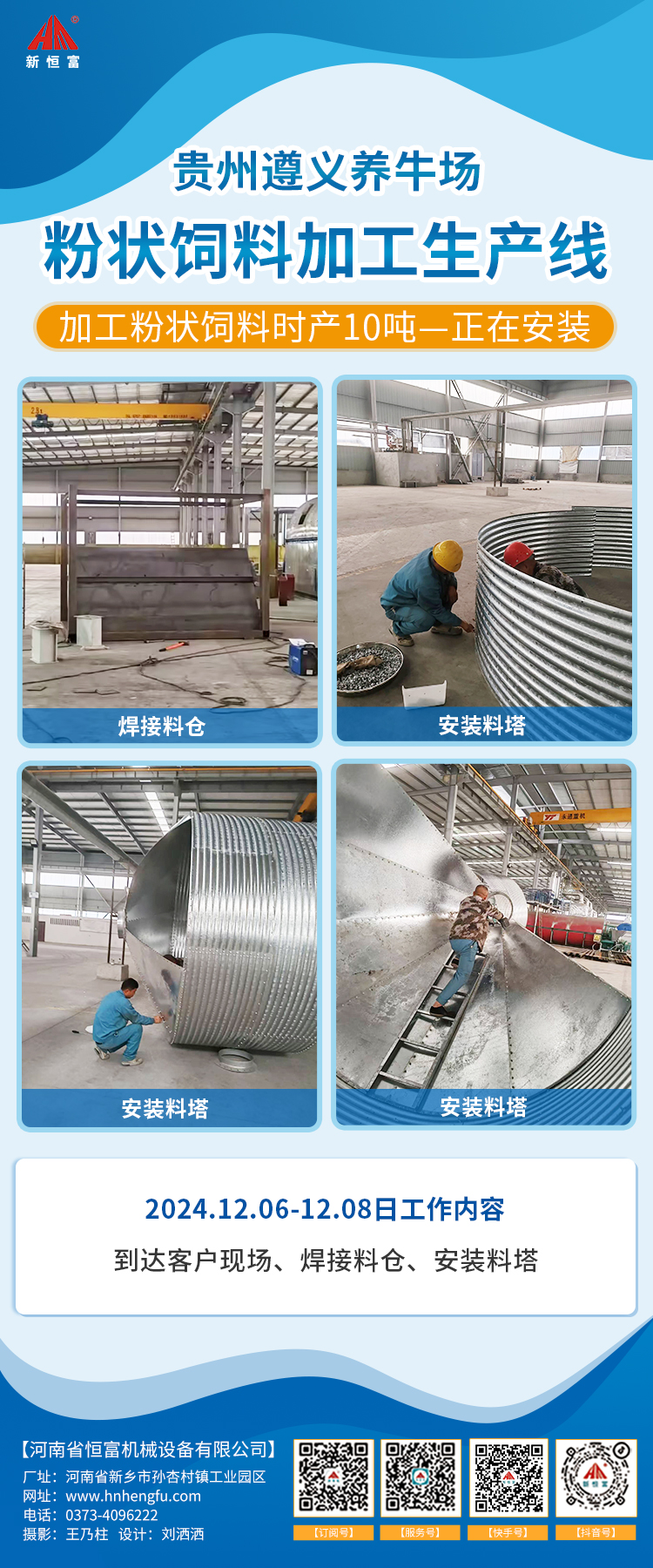 2024年12月2日-12月7日,主要工作內容:組裝設備連接口(kǒu)、焊接護欄、鋪地坑、安裝(zhuāng)風(fēng)網管道、設備接線、安裝包裝機和螺旋提升機。