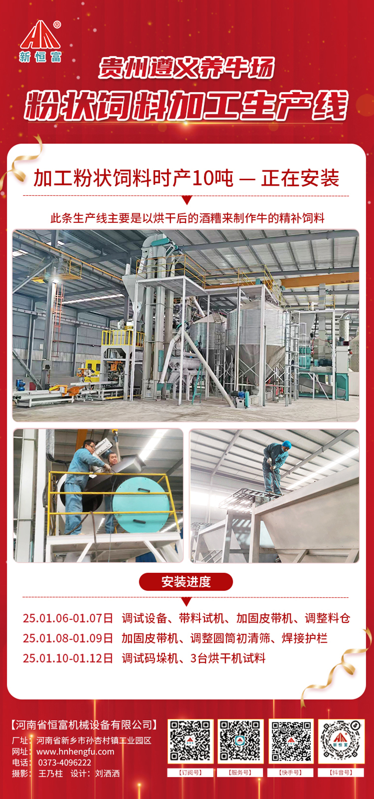 貴(guì)州遵義養牛(niú)場,時產10噸(dūn)粉狀飼料加工生產線正在安裝。
