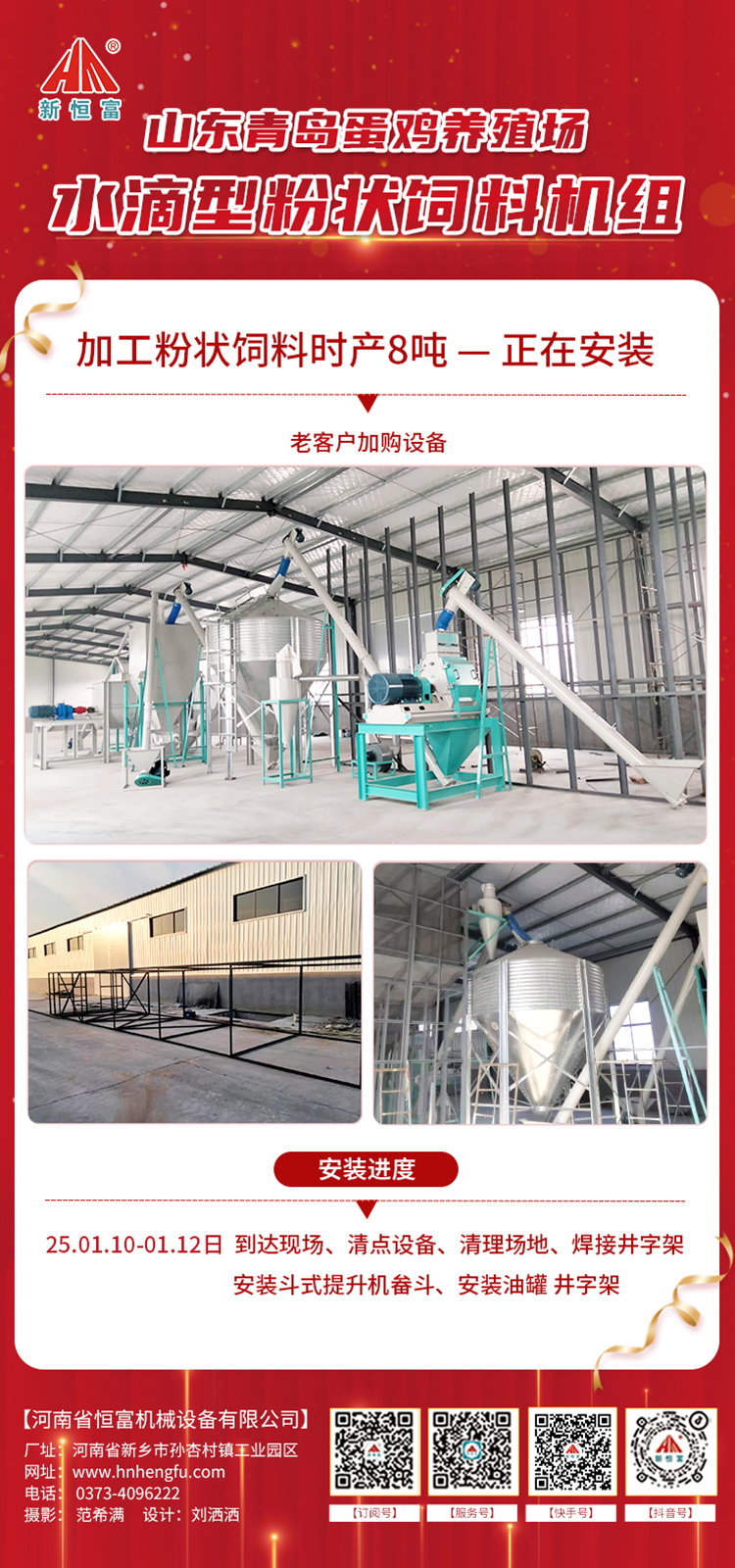 山(shān)東青(qīng)島蛋雞養(yǎng)殖場,時產8噸粉狀飼料加工機組正在(zài)安(ān)裝。