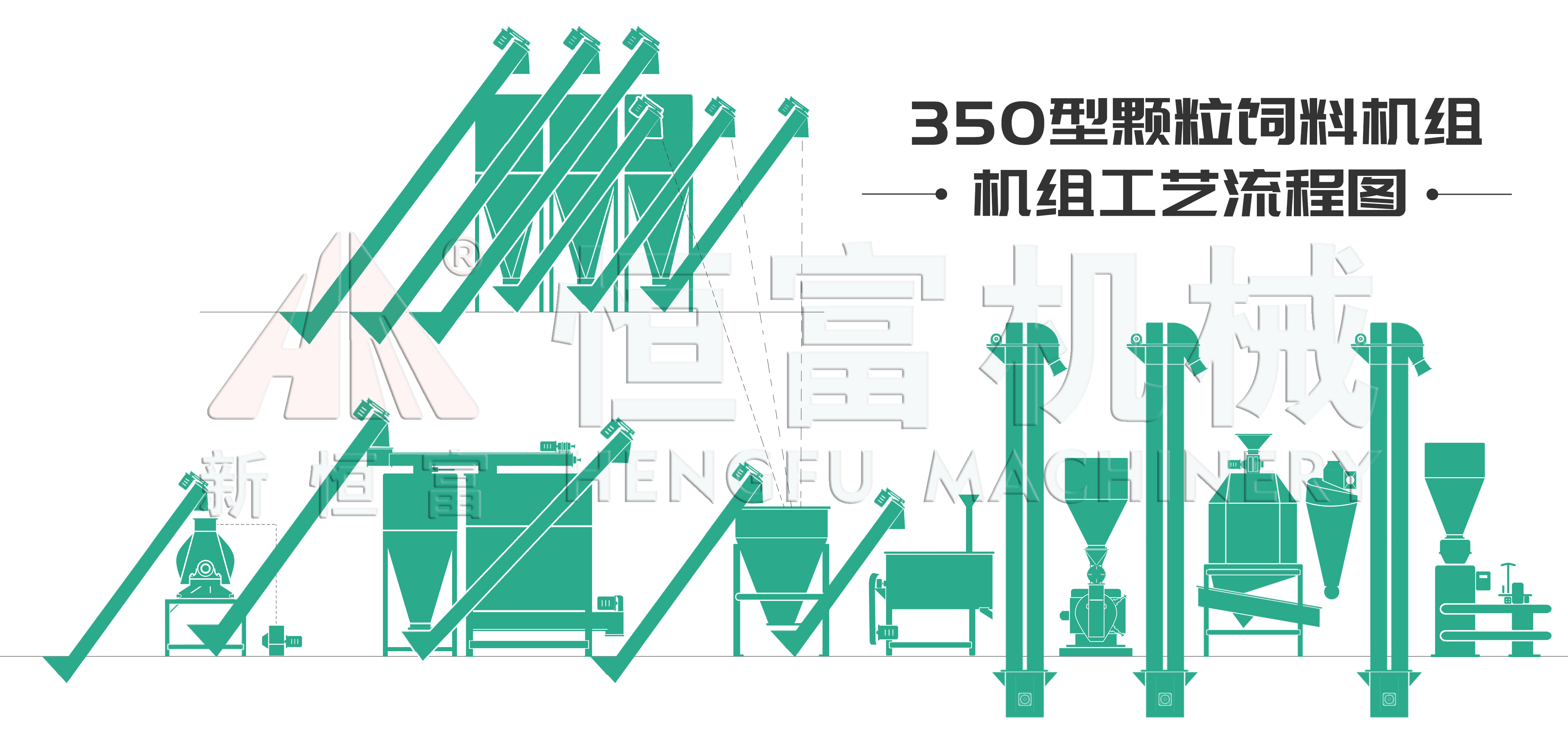 根據客(kè)戶養殖規模以及(jí)廠區布(bù)局設計,我們在(zài)前端的水滴型(xíng)臥式粉狀飼料加工機組上增(zēng)加了飼料脈衝除塵器、5個輔料(liào)倉和自動配料秤;後端搭配(pèi)飼(sì)料顆粒機和逆流(liú)式飼料冷卻器以及成品飼料包裝機。