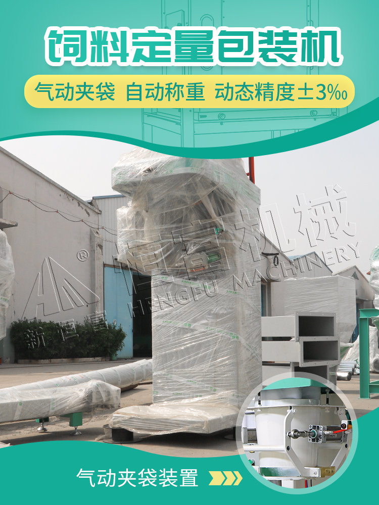 飼料包裝(zhuāng)機能(néng)自動完成夾袋、灌裝(zhuāng)、稱重、輸送、縫口、切線等全部流程。