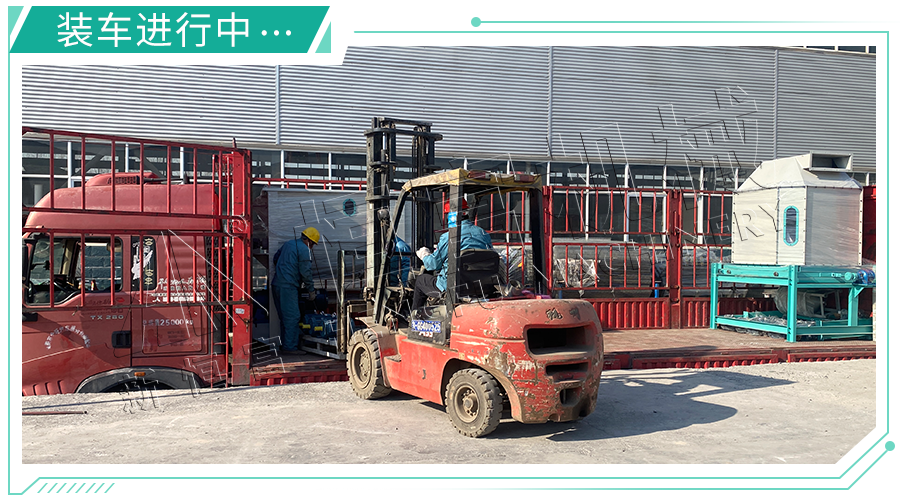 山東青島--時產8噸(dūn)粉狀(zhuàng)飼料加工機組,現已裝車(chē)完成,順利發走!