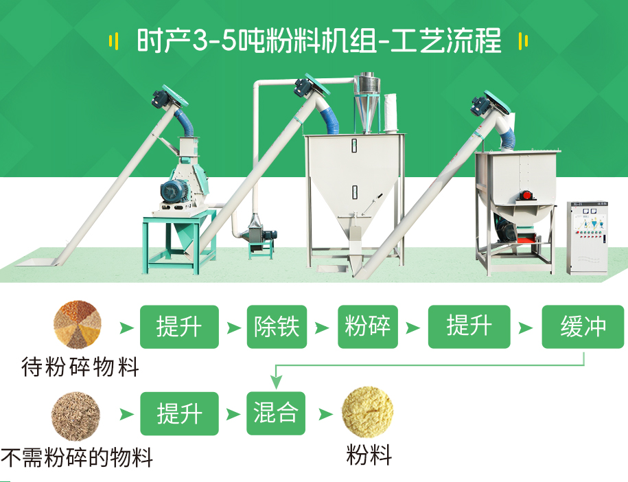 水滴型(xíng)粉狀飼料機組-工藝流程: