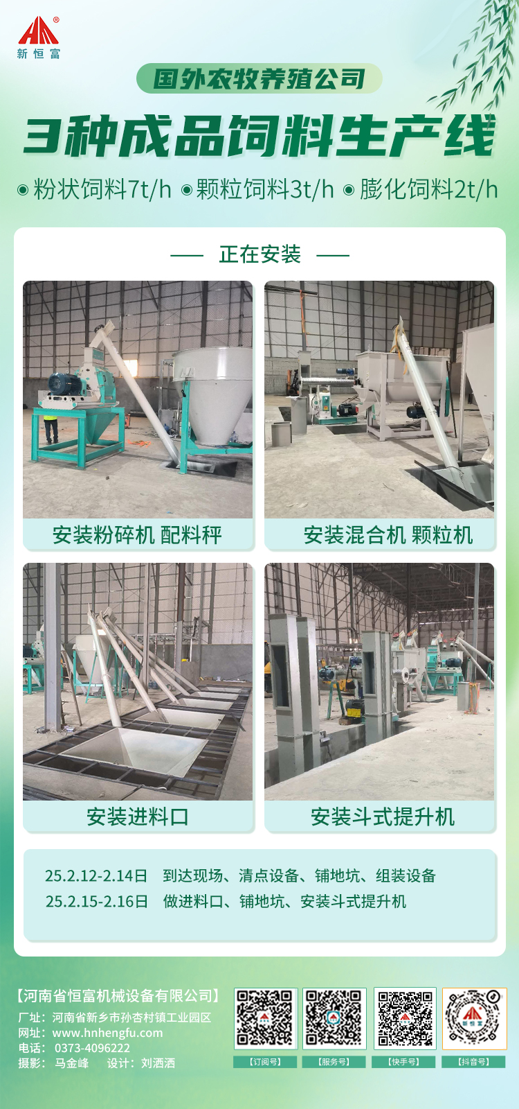 國外農牧養殖公司,時產2-7噸3種成(chéng)品飼(sì)料生產線(xiàn)正在安裝。