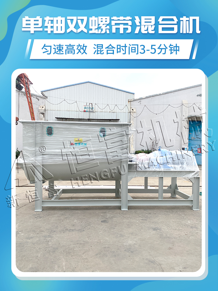臥式螺帶飼料混合機是將各種成份的粉料、液體混合均勻(yún),具(jù)有適用性廣、混合均勻度好、物(wù)料殘留少、維護保養方便等特點。