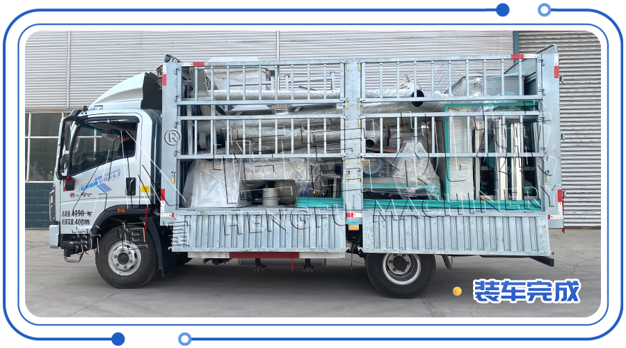 山東(dōng)曹縣--時產7-10噸蛋雞粉狀(zhuàng)飼料加工機組,裝車完成,已發走!