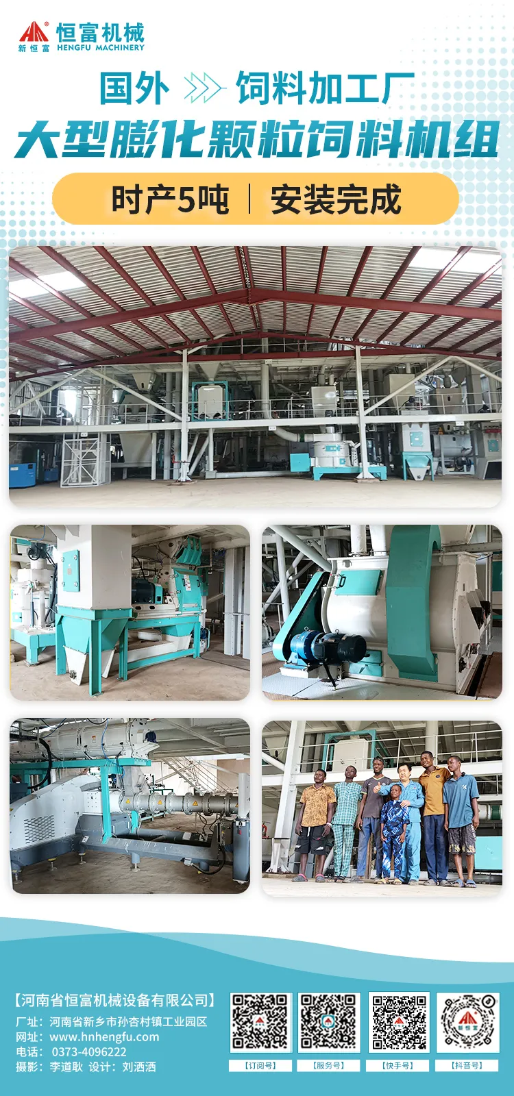 國外時產5噸(dūn)膨化顆粒(lì)飼料生產線安裝(zhuāng)完成!