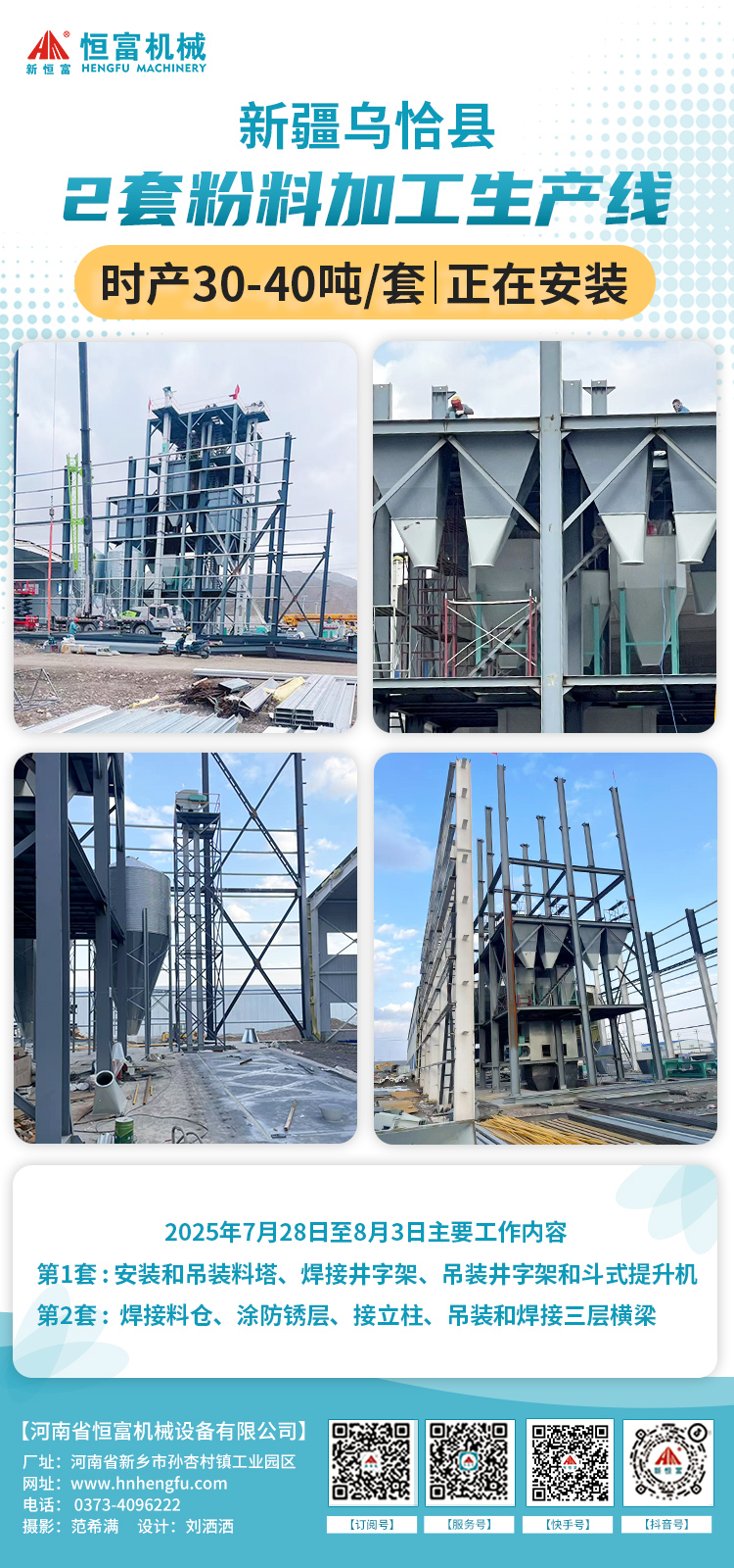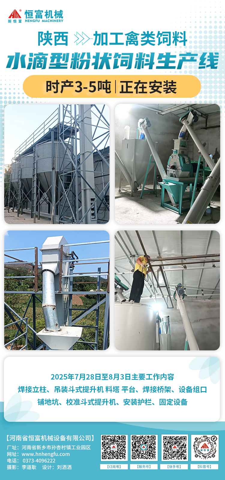 河南恒(héng)富機械-成套飼料加工設備安裝進度【2025-7-15】
