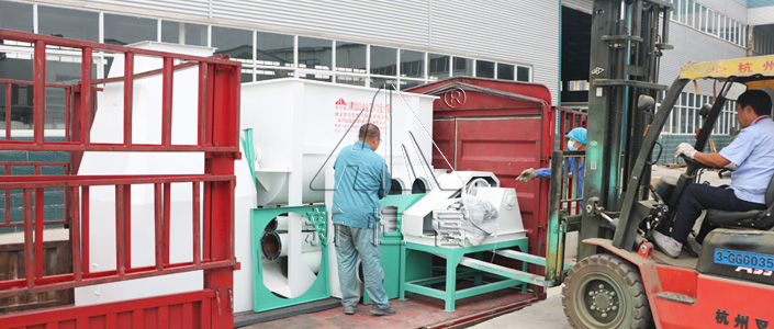 本次發貨的主要設備有:多功能粉碎機,沙(shā)克龍(lóng),250環模顆粒(lì)機,脈衝除塵器,單軸雙螺旋混合機,關風機,螺旋提升機,料倉,沙克龍,配電櫃等,並根據客戶需求,配備了6mm和8mm的模具各一件。