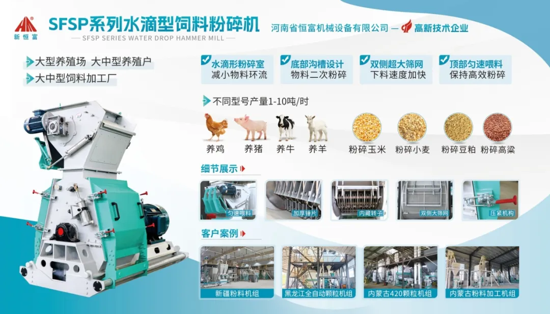 作為國內飼料機(jī)械(xiè)領域的創新引領者,妖精视频(fù)機械將隆重展出兩款匠心之作,有水滴式飼料粉(fěn)碎機以及(jí)環模飼料顆粒機。