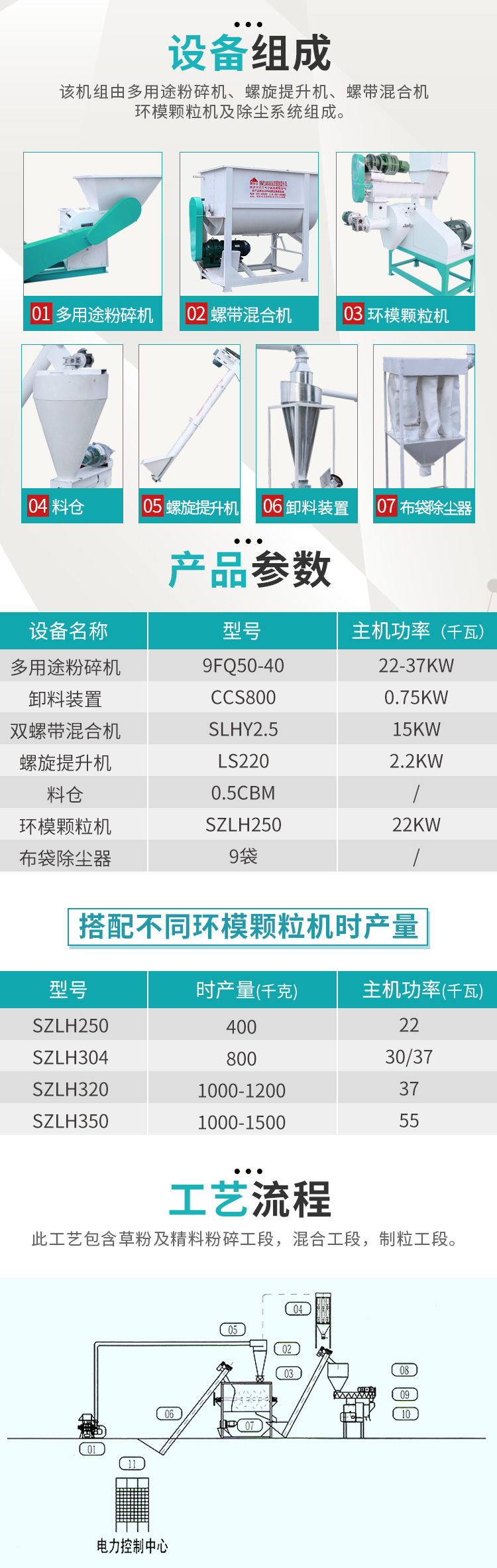 時產(chǎn)1.5噸草(cǎo)粉顆粒機組